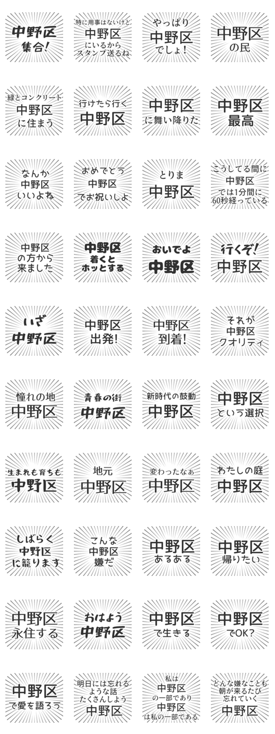 東京23区を舞台にした漫画風セリフスタンプ。集中線で叫べ。地元の人にも憧れてる人にも。面白いのが見つかると嬉しい。集中線。地元愛。