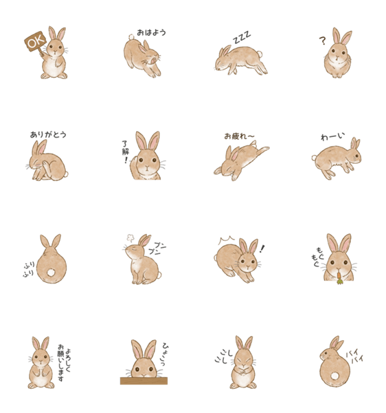 ふわふわ茶うさぎの動くスタンプ -LINEスタンプマニア