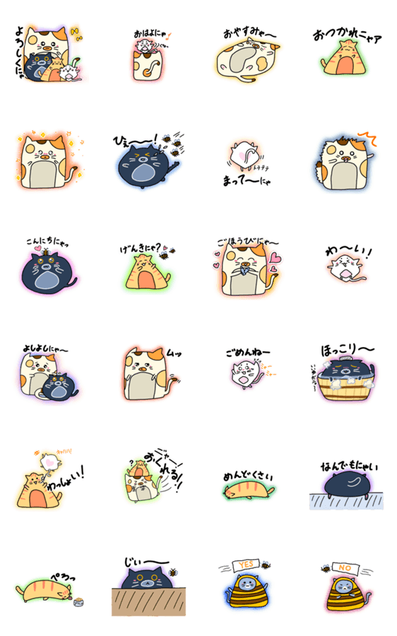 日常で使える可愛い猫スタンプが24個♡おにぎり型にサイコロ?猫好きにはたまらない!ミケッコロお姉ちゃんと妹たちをよろしくにゃ〜