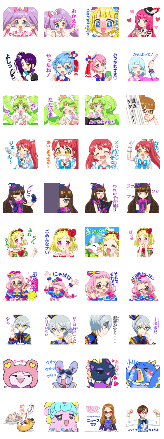 | スタンプ説明 | かしこま!み~んなトモダチ!!み~んなアイドル!!新キャラ大集合!の「プリパラ」のスタンプ第二弾!ゲームキャラクターデザイン:金谷有希子と櫻井明香の描きおろし! |