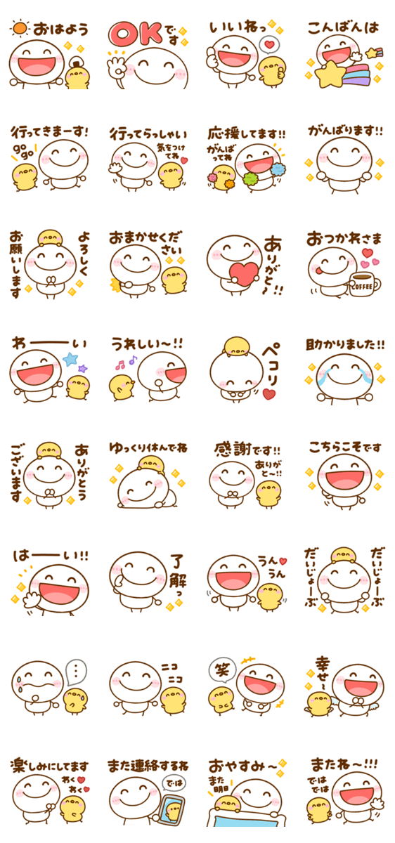 にこにこ笑顔がいっぱい♡棒人間のちびマロの毎日使いやすい言葉を厳選したスタンプです。