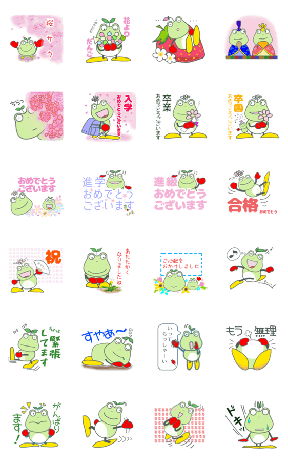 春がきたバージョン。季節にぴったりのかえるのスタンプです。