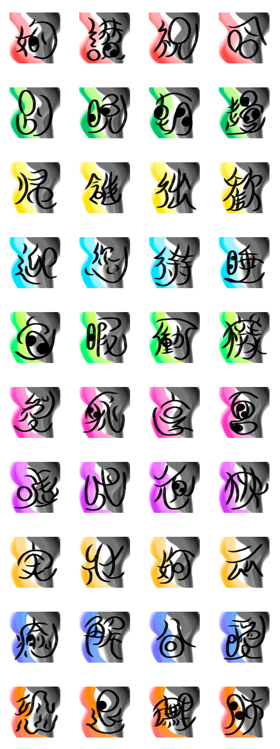 一文字で表すライン絵文字です。読めるかどうか勝手に作った創作漢字もありあり楽しく使って下さい。