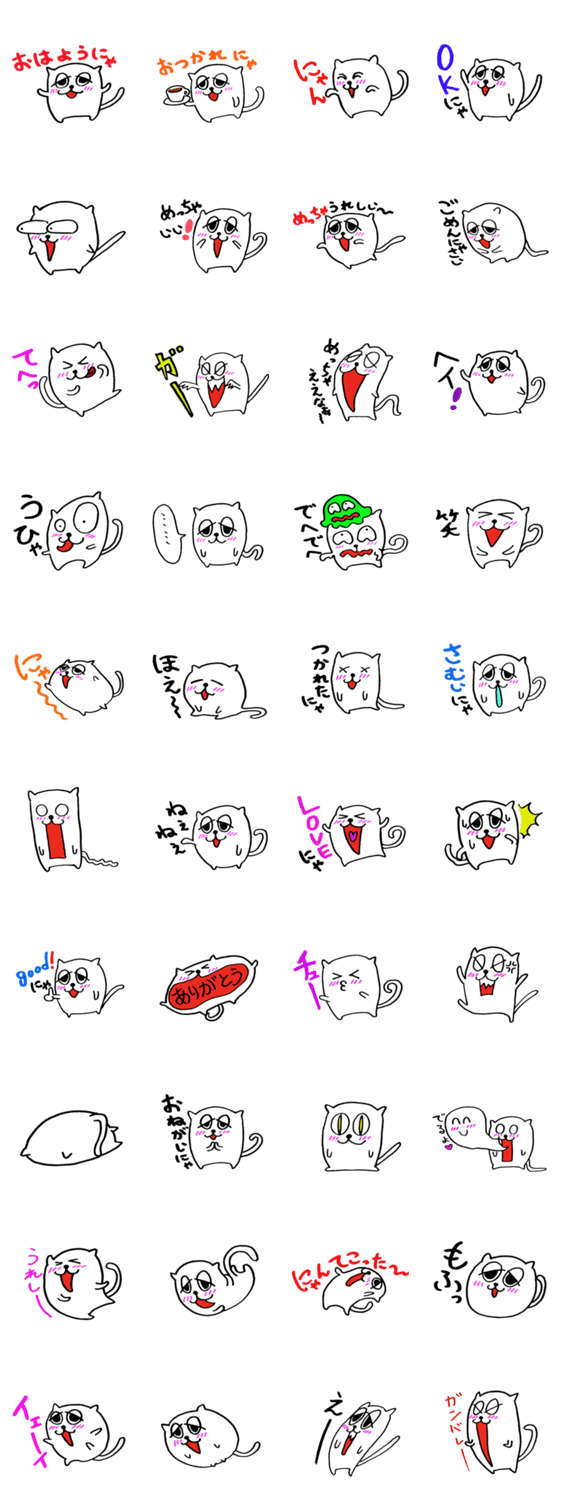 白ネコのあいうえお・・・ってるスタンプ
