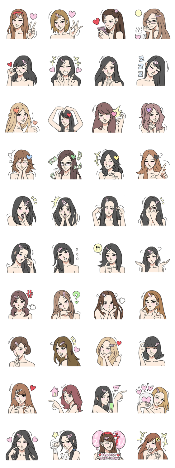 | スタンプ説明 | AsB 80 Set Anniversary for Line Stamp! Bring Back AsBTown Original Girl character from the past Set Come Together and make all Expression Face with Hair Clip |