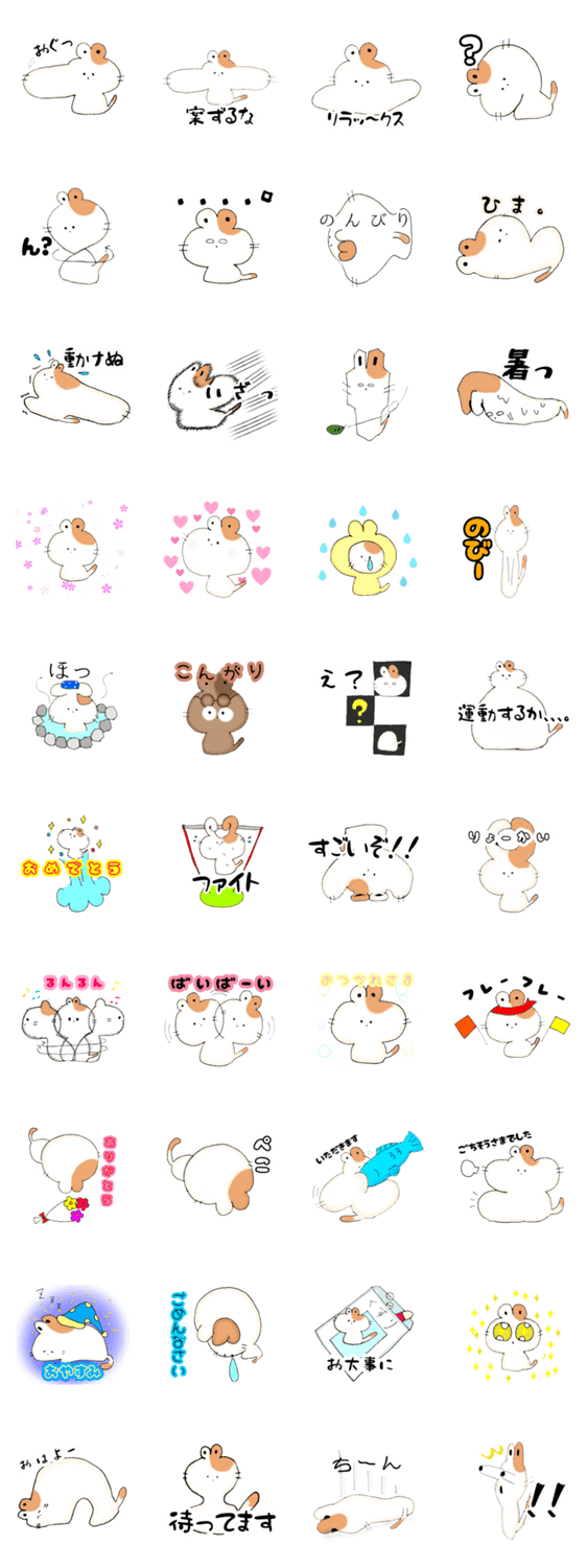 ハムスターのようなネコのようなゆる~いスタンプ! ほおぶくろが伸びたりお魚を食べたり、、、キャラもゆるければ設定もゆるい!ゆる~く使ってください。
