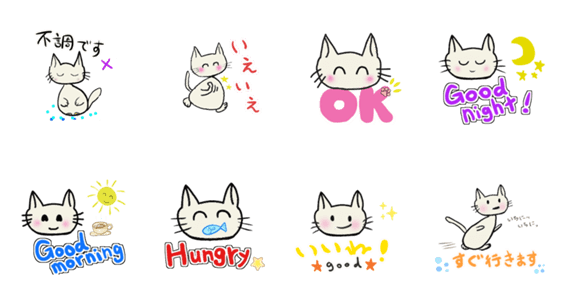 | スタンプ説明 | 白猫がかわいい!いろんなシーンに毎日使える便利なスタンプ |