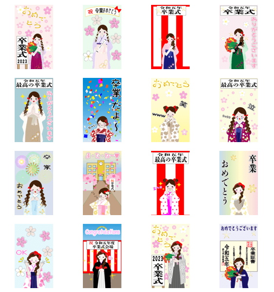L/赤いリボン女の子 卒業式 袴 2023 -LINEスタンプマニア