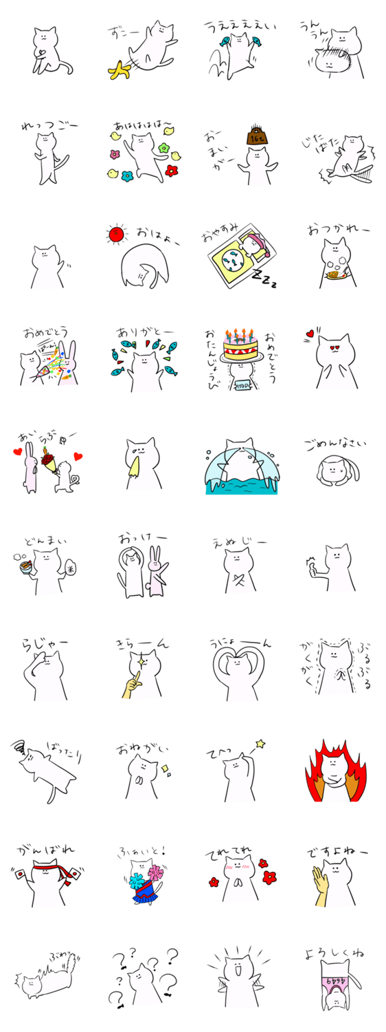 ゆるーいのに使いやすーい!使用頻度の高いスタンプ40種です。脱力系ねこと一緒に脱力しちゃってください((('ω')))