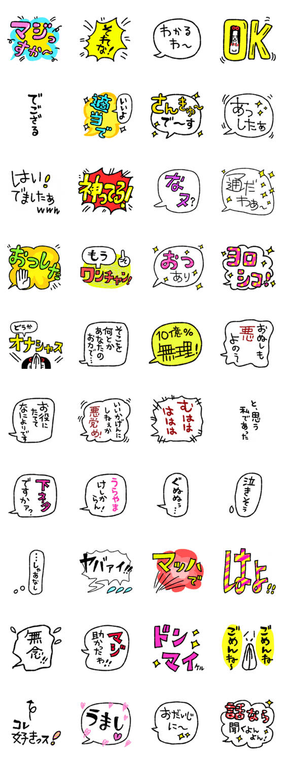 文字だけで伝えたい時あります。年上や友達、グループでも使いやすい文字セットです。