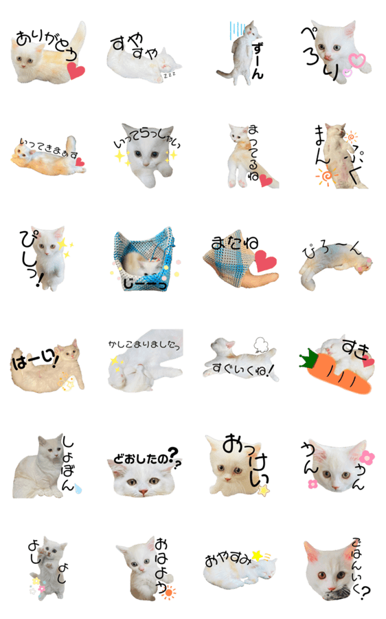 白ネコのあいうえお・・・ってるスタンプ
