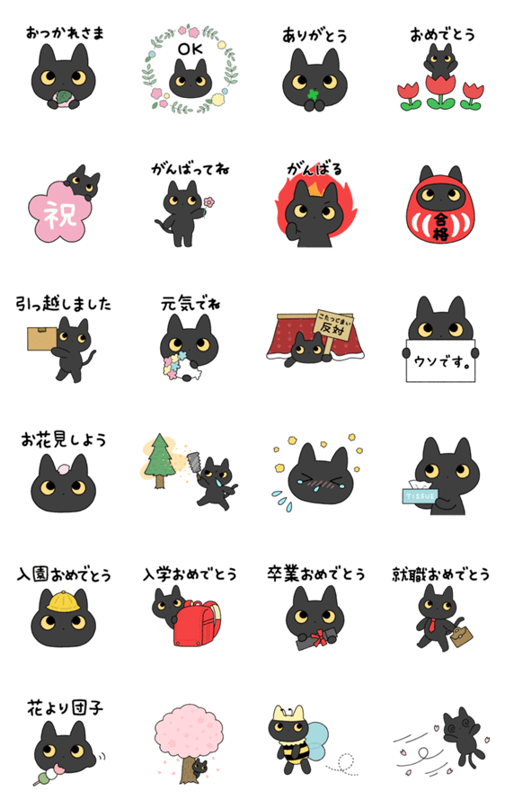 春に使いやすいスタンプを集めてみました。 黒猫/春/猫/ゆるい