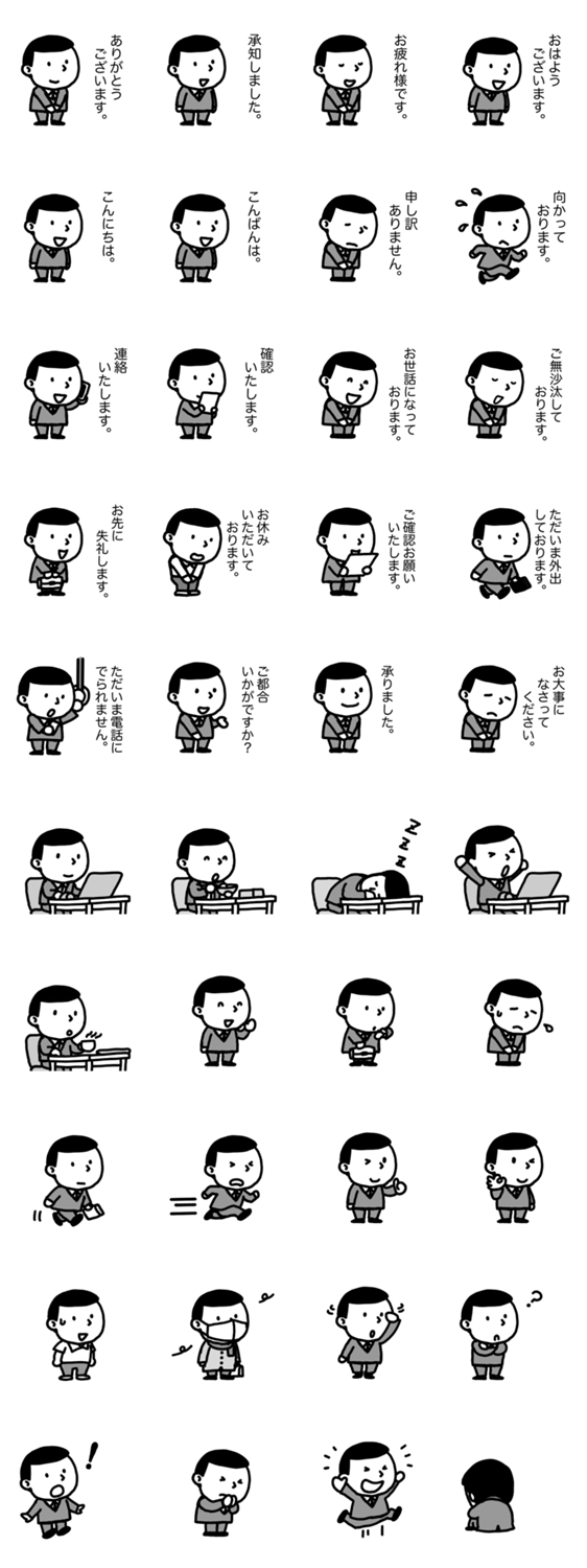 シンプルモノクロ会社員 -LINEスタンプマニア