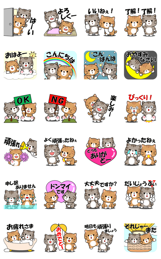 いつも仲良しトラ猫のキジトラと茶トラが飛び出して動いて気持ちを伝えます。