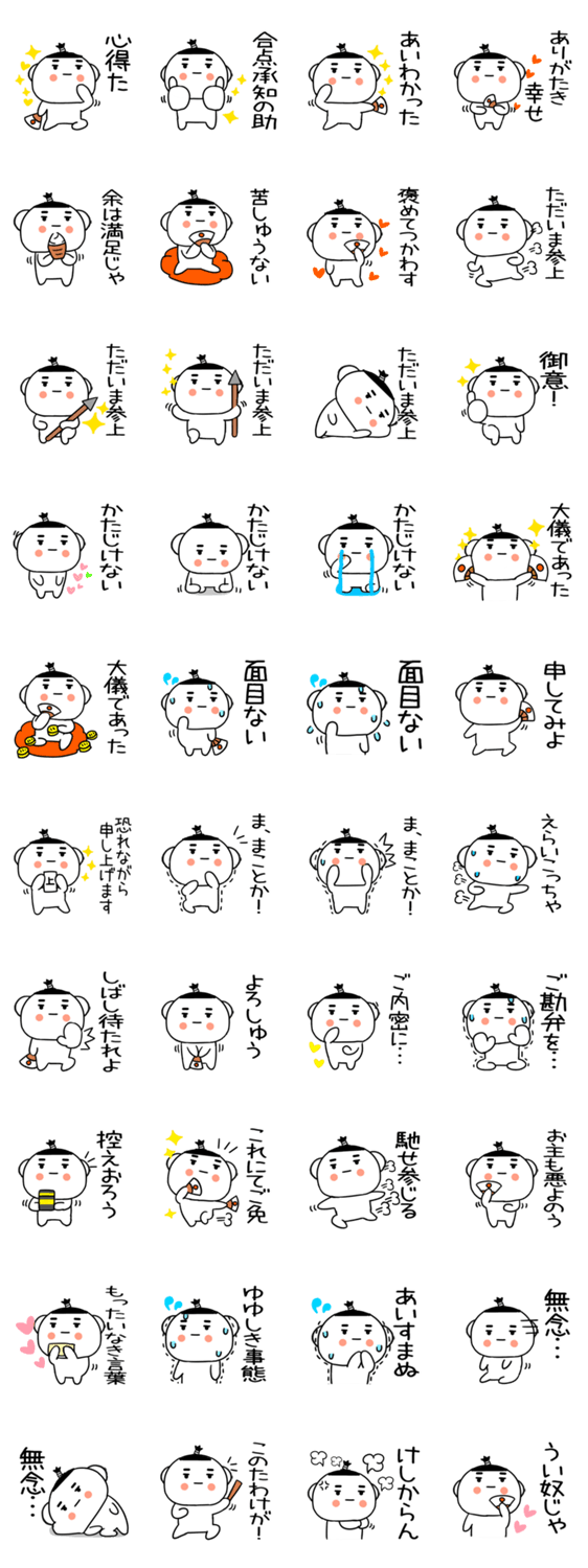 しろくてまるい武士語くんがよく使う武士語を集めたスタンプです もるきゅた作