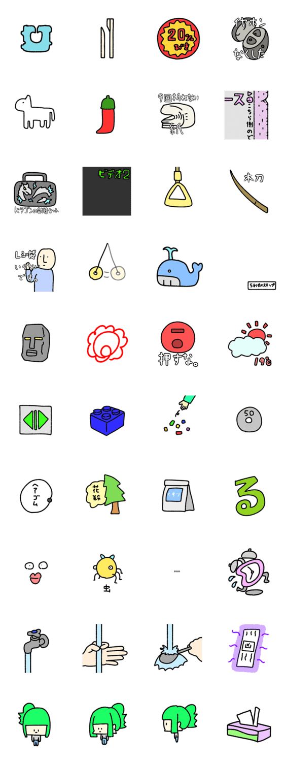 | スタンプ説明 | 今までの特に意味もないイラストをかき集めたスタンプ達です。可愛がってあげてください。1個でもお気に入りのものが見つかれば嬉しいです。 |