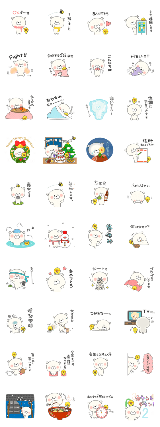 もっちもちのゆるーい白くまさん「クマもっち」冬・クリスマス・イベント・年越しに使えるスタンプをセットにしました★グラフィックデザイナー【たかせゆづき】スタンプ