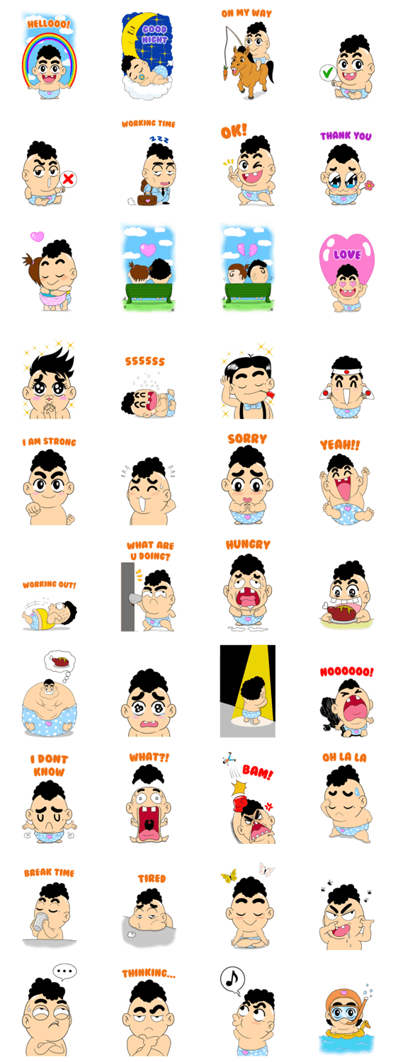 Welcome to the world of the lovely and the naughty Baby Jai-dee! These stickers will show up extra large in chats.