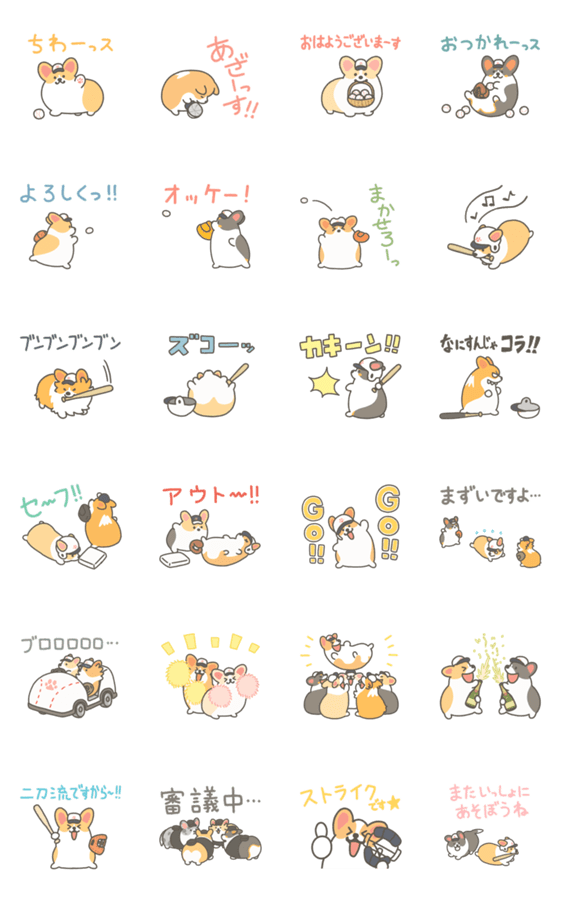 ベースボール大好きコーギー犬の動くスタンプです。野球のプレイ・観戦のお供にコギの成分が欲しくなったらお使い下さい。