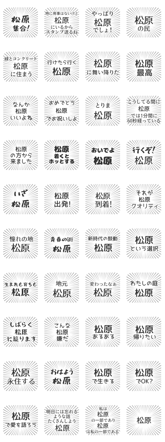 東京を舞台にした漫画風セリフスタンプ。集中線で叫べ。地元の人にも憧れてる人にも。面白いのが見つかると嬉しい。集中線。地元愛。
