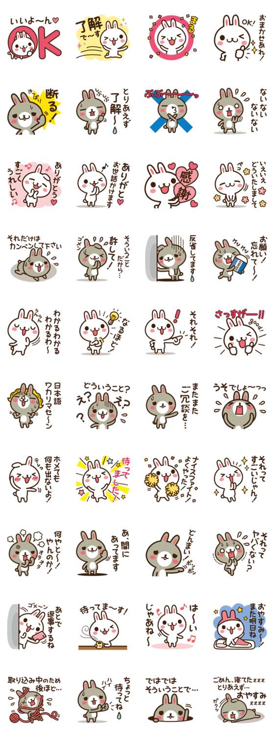 ポジティブで明るいうさぎと、ネガティブでひねくれ者のうさぎが、相手からのメッセージに即答!素早い返事でトークもスムーズなシリーズ第5弾。