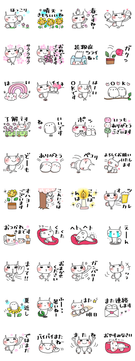 シンプルな絵と大きくて見やすい文字でサクッと送れる40個。しまえながさんと春色うさきゅんの優しいほっこりスタンプです。(シマエナガ、日常、大人かわいい)