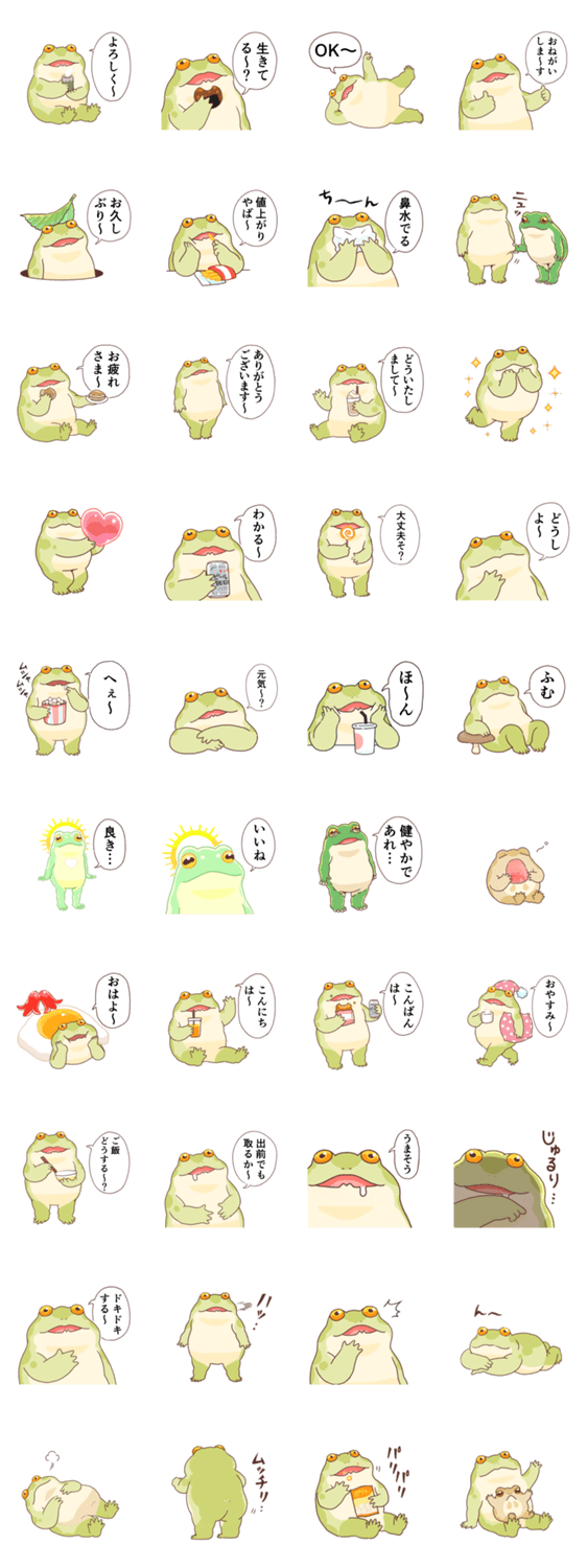 マルメタピオカガエルさんがメインの挨拶多めのスタンプです。 カエル好きさんにどうぞ。