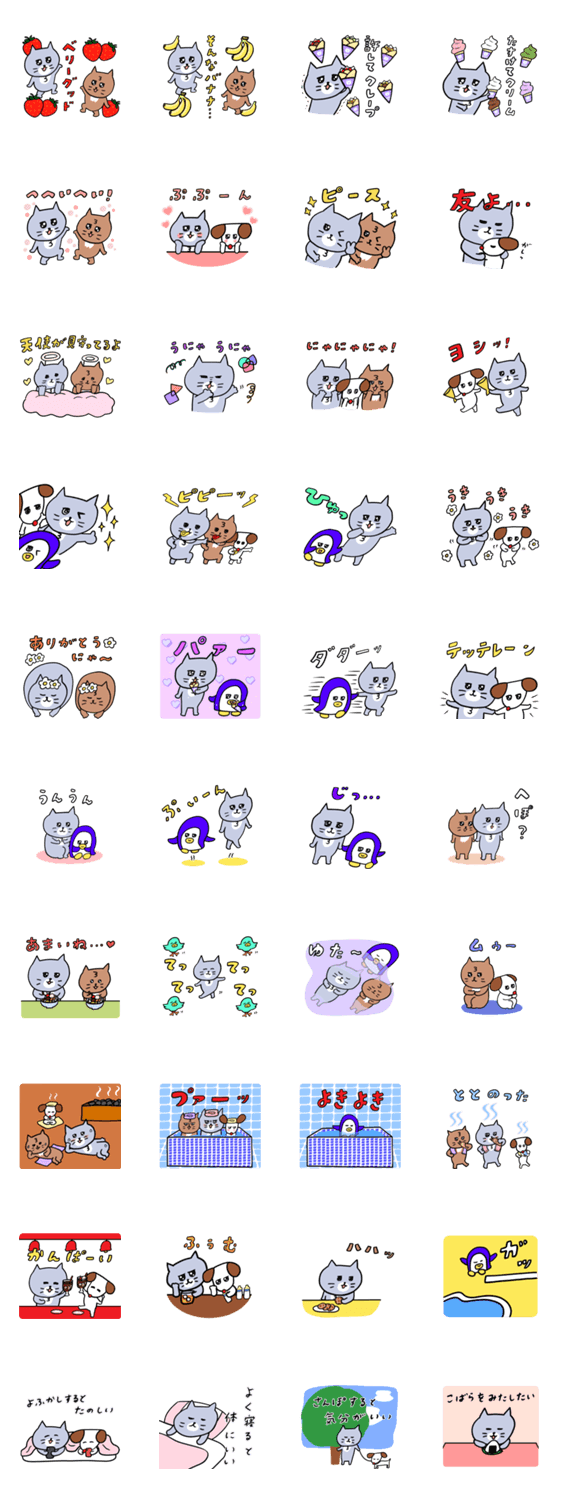 灰色キャットと仲間たちのなかよしでハッピーな毎日。大きな文字で見やすい! 日常の明るく楽しく愛くるしいコミュニケーションに使えるよ。猫/いちご/サウナ/スイーツ