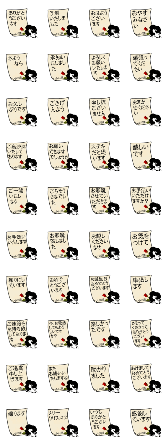 敬語スタンプ 承知いたしました おまかせください おめでとうございます 感謝しています ごきげんよう 帰ります ご無沙汰いたしております ミステリアスなスタンプ
