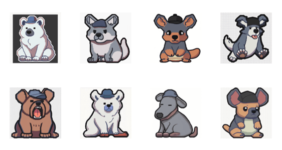 ピクセル風犬-1 (幸福、悲しみ、怒り、喜び、狂気、愚かさ、退屈、驚き)