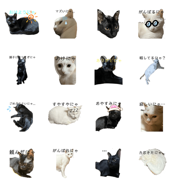 かわいい猫2匹のスタンプです。黒い方の猫の名前はビビ、白い方の猫の名前はまろです。ぜひ使ってみてね。
