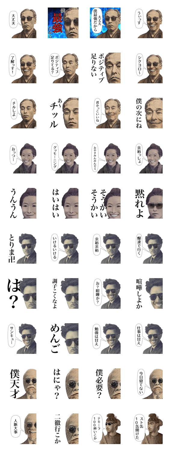 | スタンプ説明 | 普段使い出来るように面白い、鬼可愛い、煽り、ネタ、イキリ、滅多にない・刃のように鋭いツッコミを意識して作りました。大丈夫、僕最強だから! |