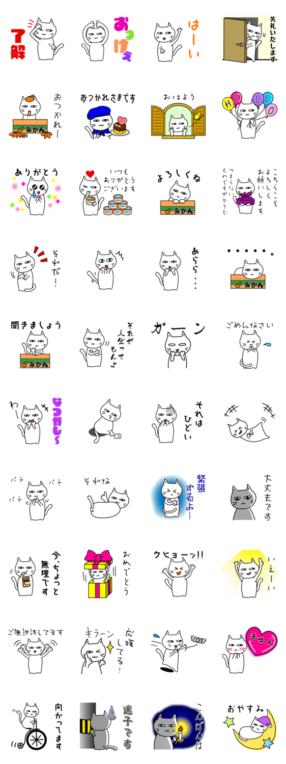 白ネコのあいうえお・・・ってるスタンプ