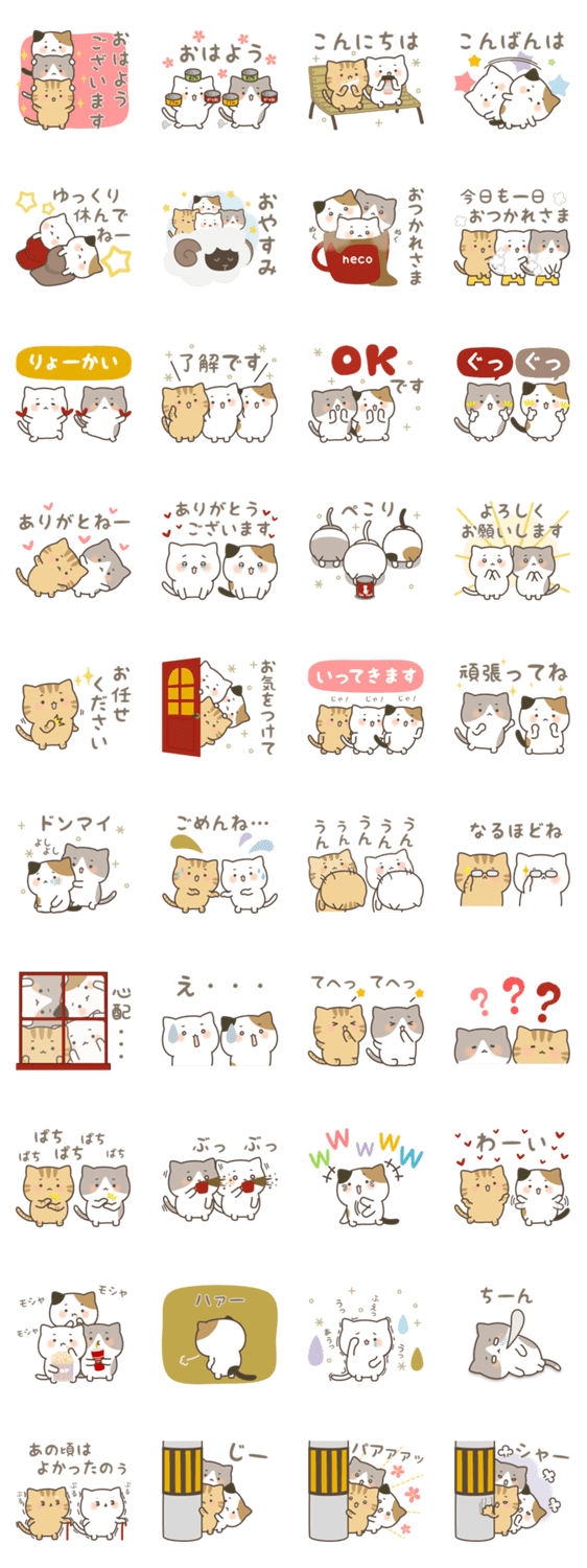 ねこたちの毎日使える可愛いスタンプです♪