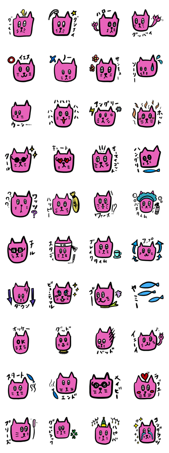 毎日使える便利なネコのスタンプです。挨拶のほか、返信に困った時などにもおすすめです。可愛い/ネコ/日常/ピンク/挨拶