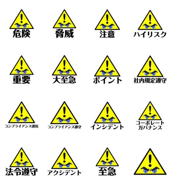 脅威 危険 ハイリスク 重要 遵守 至急 リスク インシデント アクシデント 注意 喚起 コンプライアンス 違反 法令 コーポレート ガバナンス デカ文字 シンプル