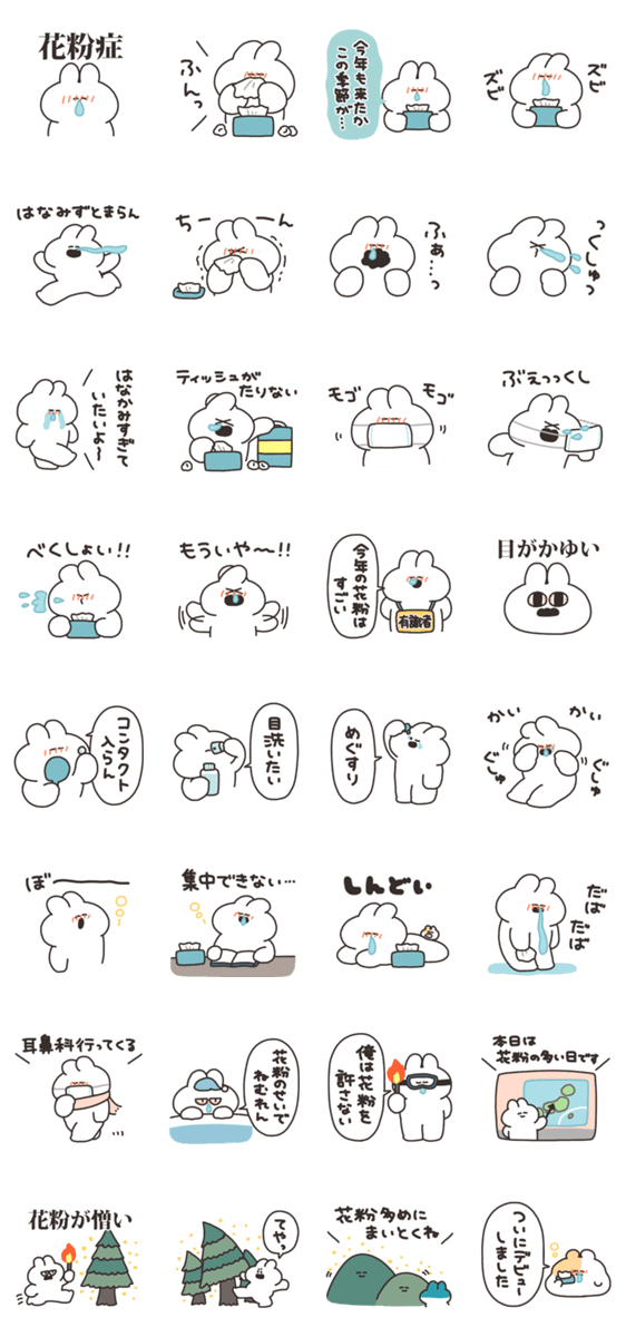 花粉症のうさぎのスタンプです。