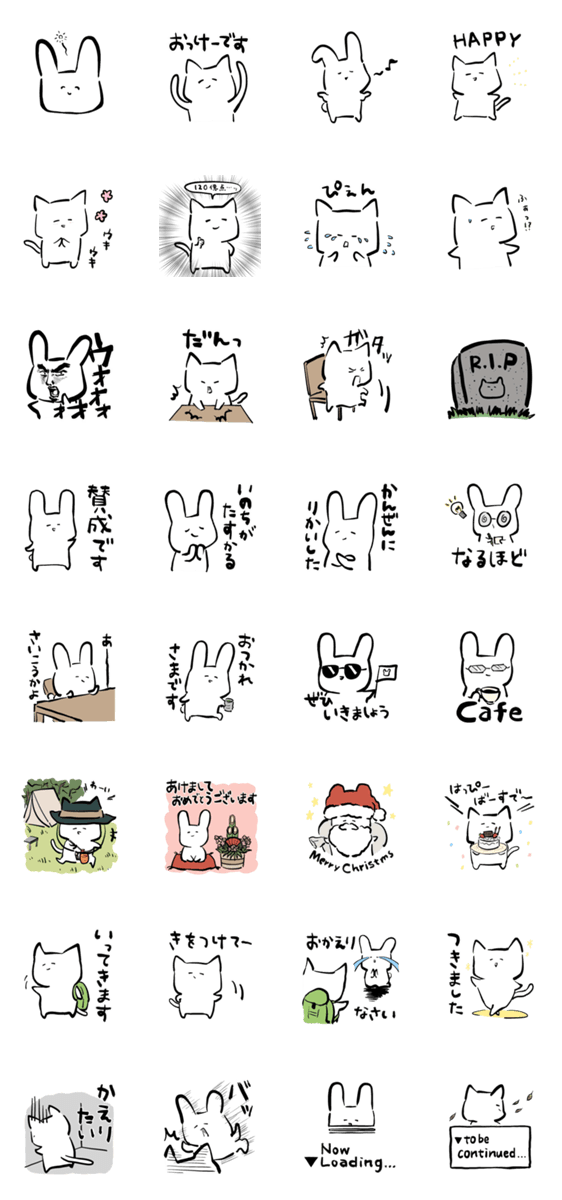 うさぎとねこのとっても使いやすいスタンプです。