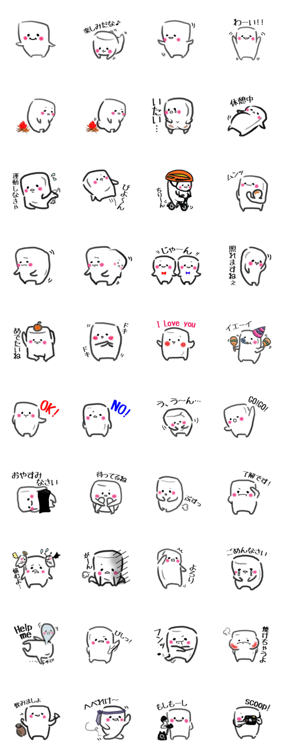 まったり系の癒し系。日常会話に使えるお餅のスタンプです。時に可愛く、時にシュールにもちっと活動中。