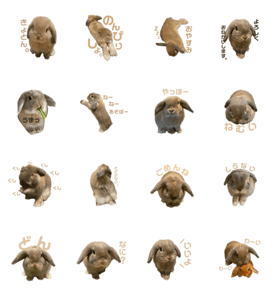 うさぎのぽぽ様のかわいいスタンプです。(ホーランドロップイヤー)