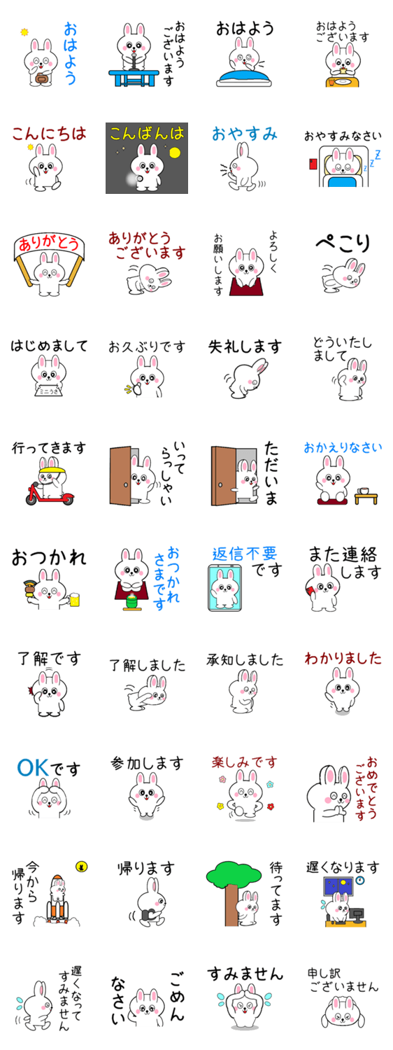 ミニうさ9(あいさつ編) -LINEスタンプマニア