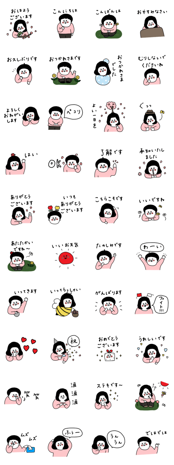 | スタンプ説明 | シンプルで大人の女性でも使いやすいスタンプです。敬語入り。春。 |