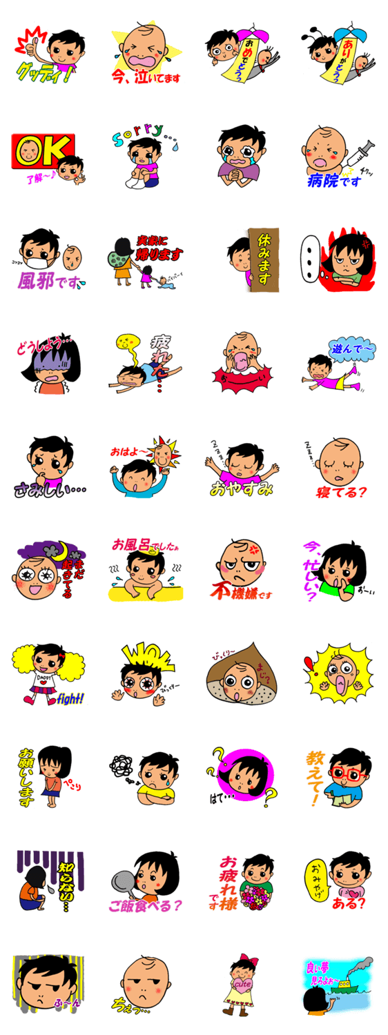 赤ちゃんと女の子を持つ2児の母が考えたスタンプです。パパやママ友との会話に使って下さい。