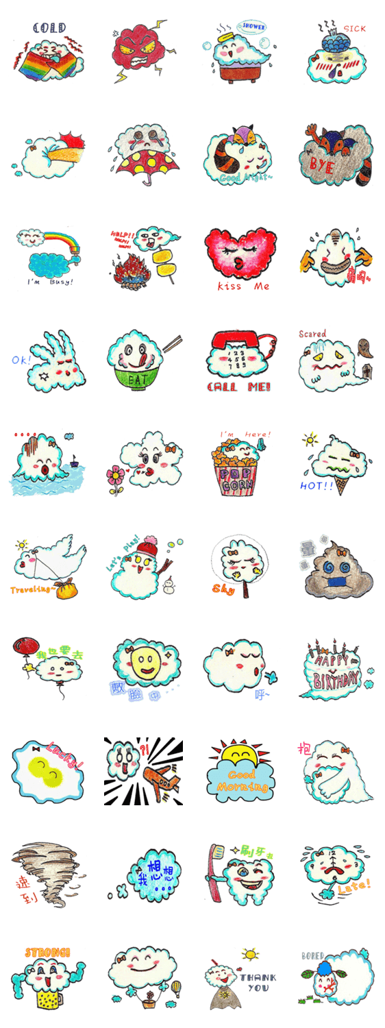 | スタンプ説明 | Small White Cloud always feels lonely, so she goes to land to play, makes friends, and adventures it. The necessary condition is that she needs to role-playing. |