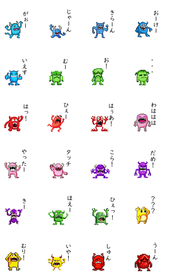 ピクセル モンスター ジェスチャー 表情 シンプル 様々
