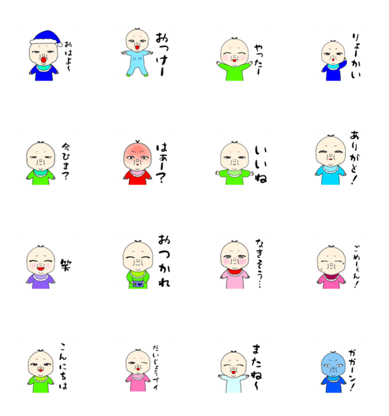 スタンプ説明 おじさんみたいな赤ちゃんのスタンプです