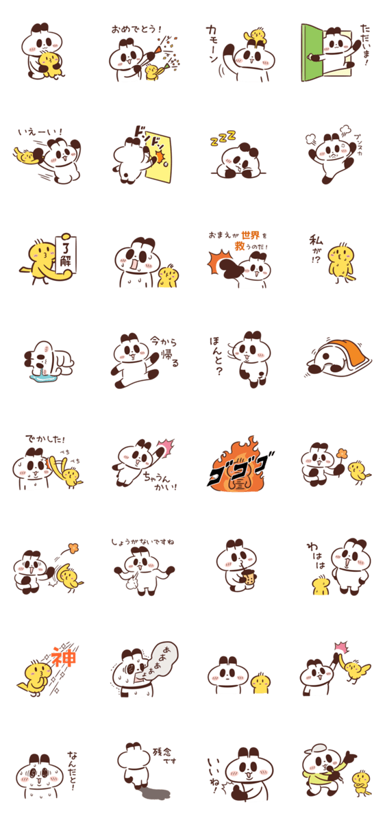 | スタンプ説明 | ウサギのようなパンダのようなそんな生物とインコのスタンプその2。 |