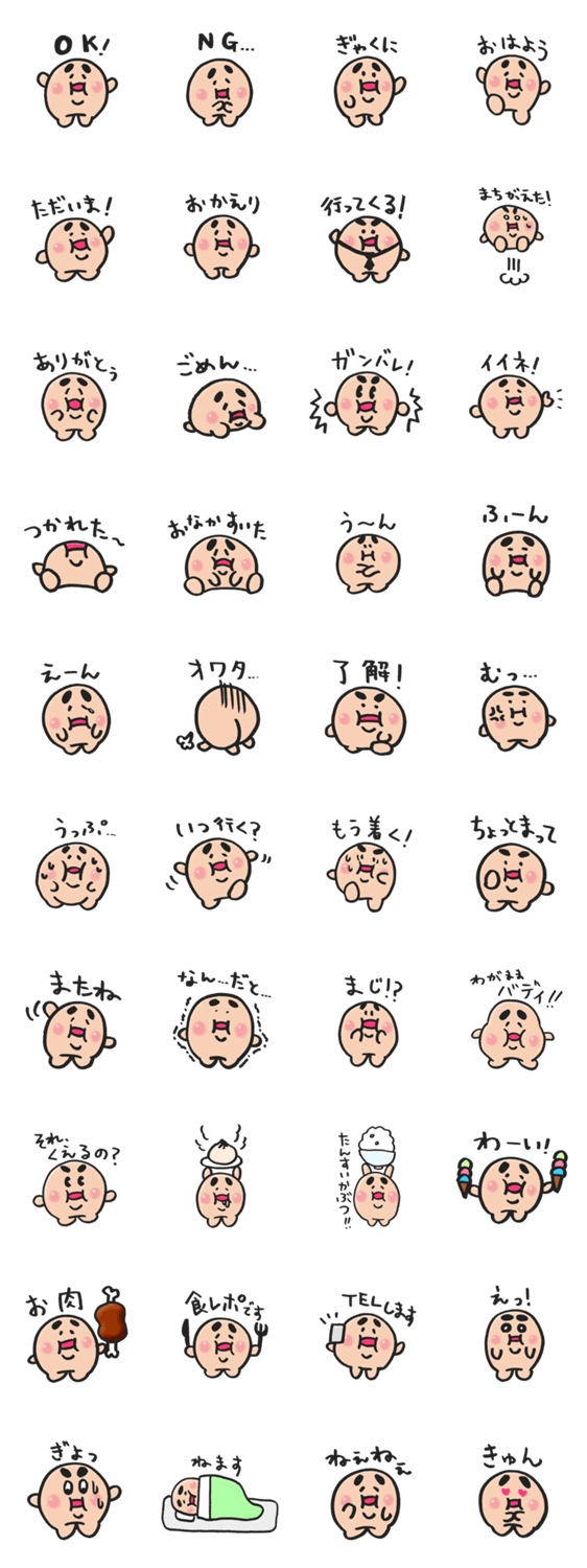| スタンプ説明 | 食べるの大好き!食いしん坊のあに丸は、30代後半の男の子。趣味は食レポと自己啓発。 |