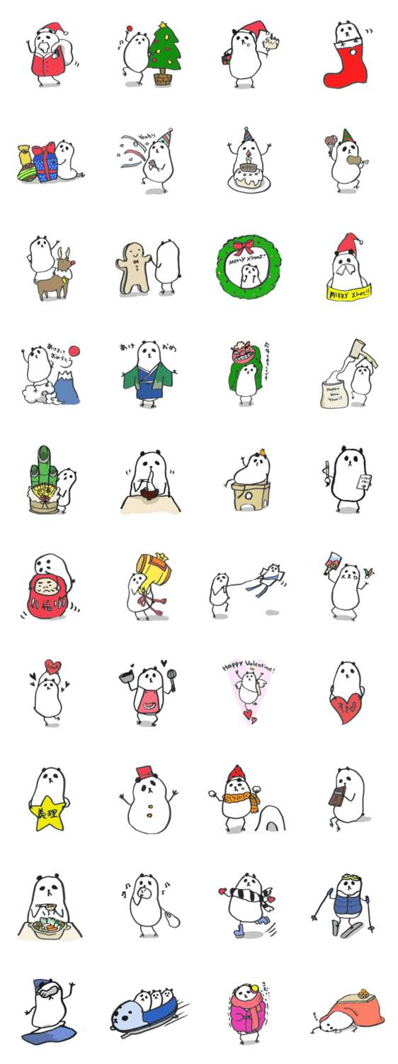 ゆるいパンダさんに冬が来たよ!クリスマスにお正月にバレンタイン…浮かれまくりなパンダさんのスタンプ。