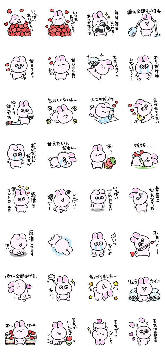 好きな人に伝えたい♡シュールなミニうさぎのスタンプです。